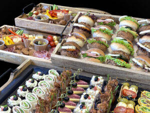 Wij rekenen per persoon 4 hapjes en 1 minibroodjes (te bestellen vanaf 20 personen) en u heeft de keuze uit 7 verschillende hapjes & prikkers en 5 verschillende minibroodjes.