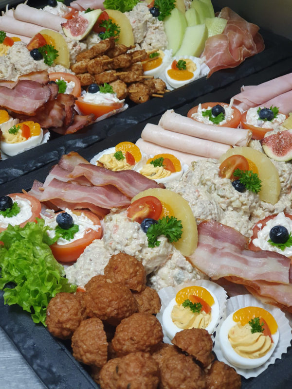 Paasbuffet “de Luxe” met warme beenham met champignon roomsaus  en naar wens zelfs uit te breiden is met onze huisgemaakte rauwkostsalades, verse fruitsalade, en ons overheerlijke gekruide stokbrood om zelf af te bakken. Dit Paasbuffet is te bestellen vanaf 4 personen.