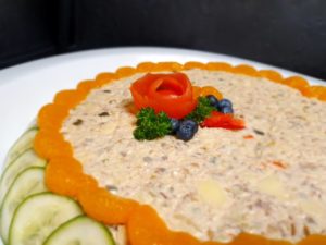 Rauwkostsalade, tonijnsalade, vleessalade, kipsalade, filet american, scharreleisalade, brie.